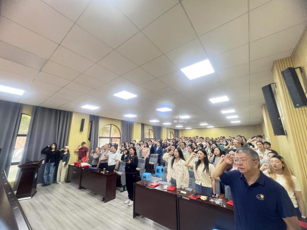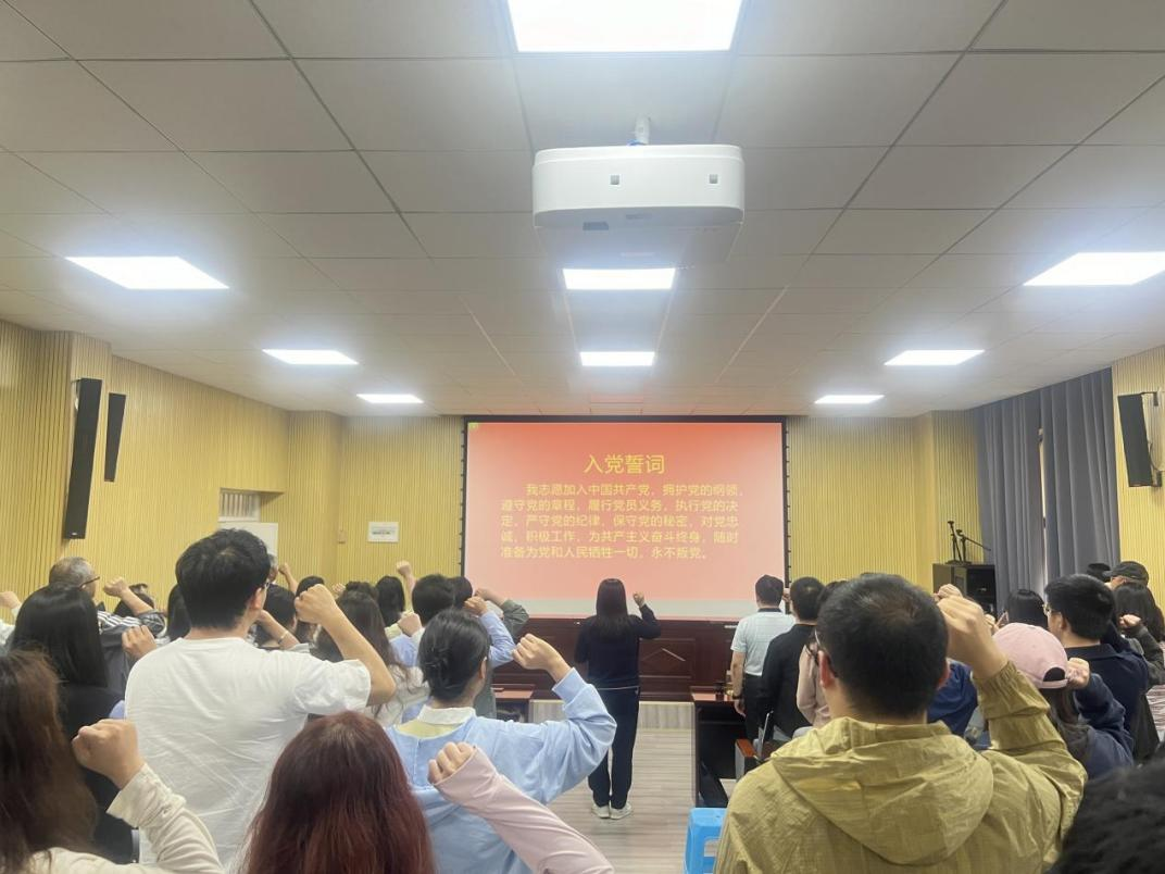 最后,李娟书记带领全体党员同志重温入党誓词,大家神情庄重、声音铿锵。组织上入党,是一生一次,而思想上入党,是一生一世。短短80字的入党誓词,浓缩着一代又一代中国共产党人高擎信仰火炬、推进伟大复兴的激情梦想。面对鲜红的党旗,新老党员们举起右拳,庄严宣誓。铮铮誓言在报告厅内回响,这是学院师生党员们对初心使命的回望,更是对接续奋斗的宣示。
