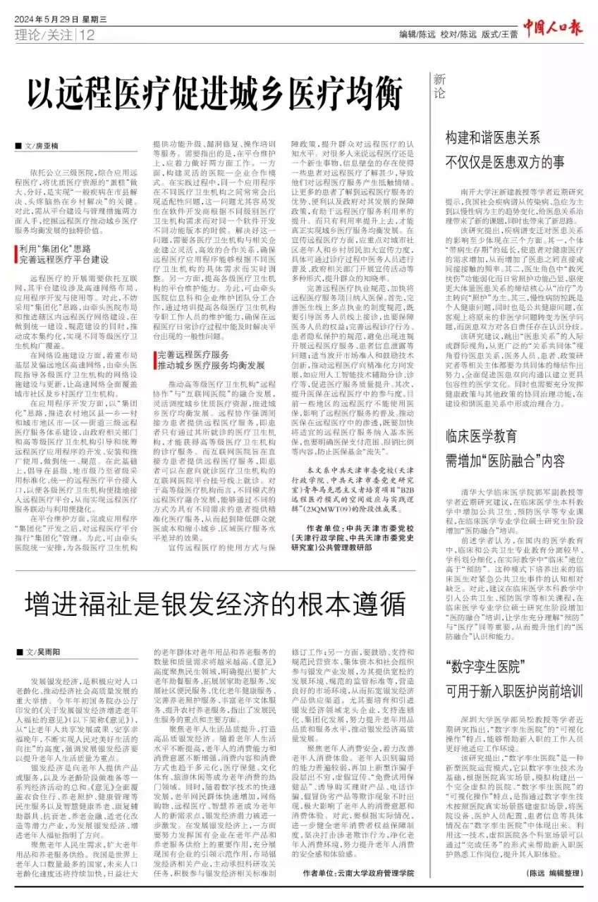伟德bv1946官网2023级公共事业管理+地理信息科学专业本科生吴雨阳同学在2024年5月29日出版的《中国人口报》(理论版)发表了题为《增进福祉是银发经济的根本遵循》的学术论文。