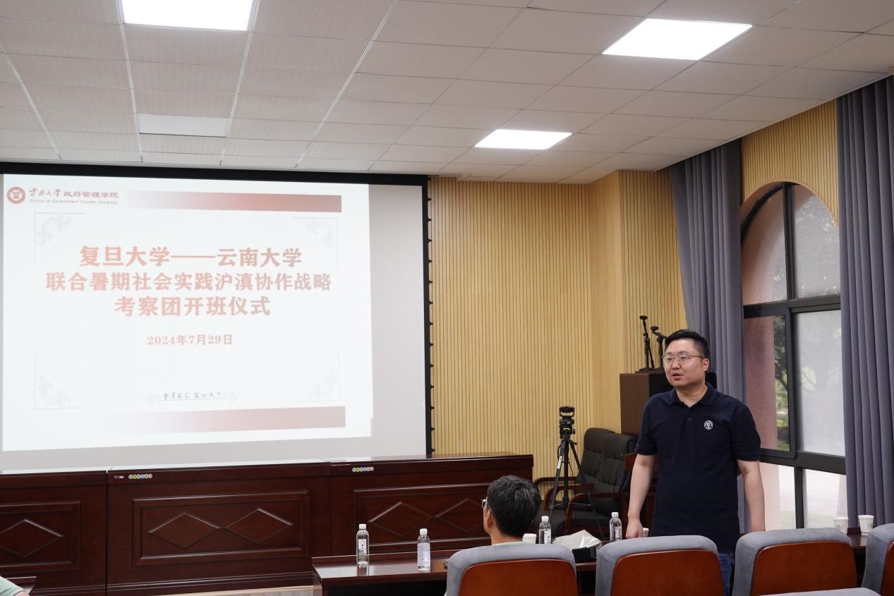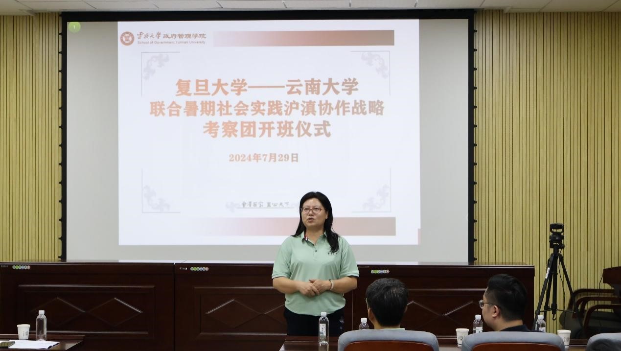 考察团开班仪式于2024年7月29日在伟德bv1946官网105会议室举行。伟德bv1946官网党委书记李娟对复旦大学哲学学院的老师和学生表示了热烈的欢迎,并希望在本次社会实践中,同学们能发现云南和上海沪滇携手,山海共赢背后的精彩故事,进一步传递跨越万水千山的山海情谊。