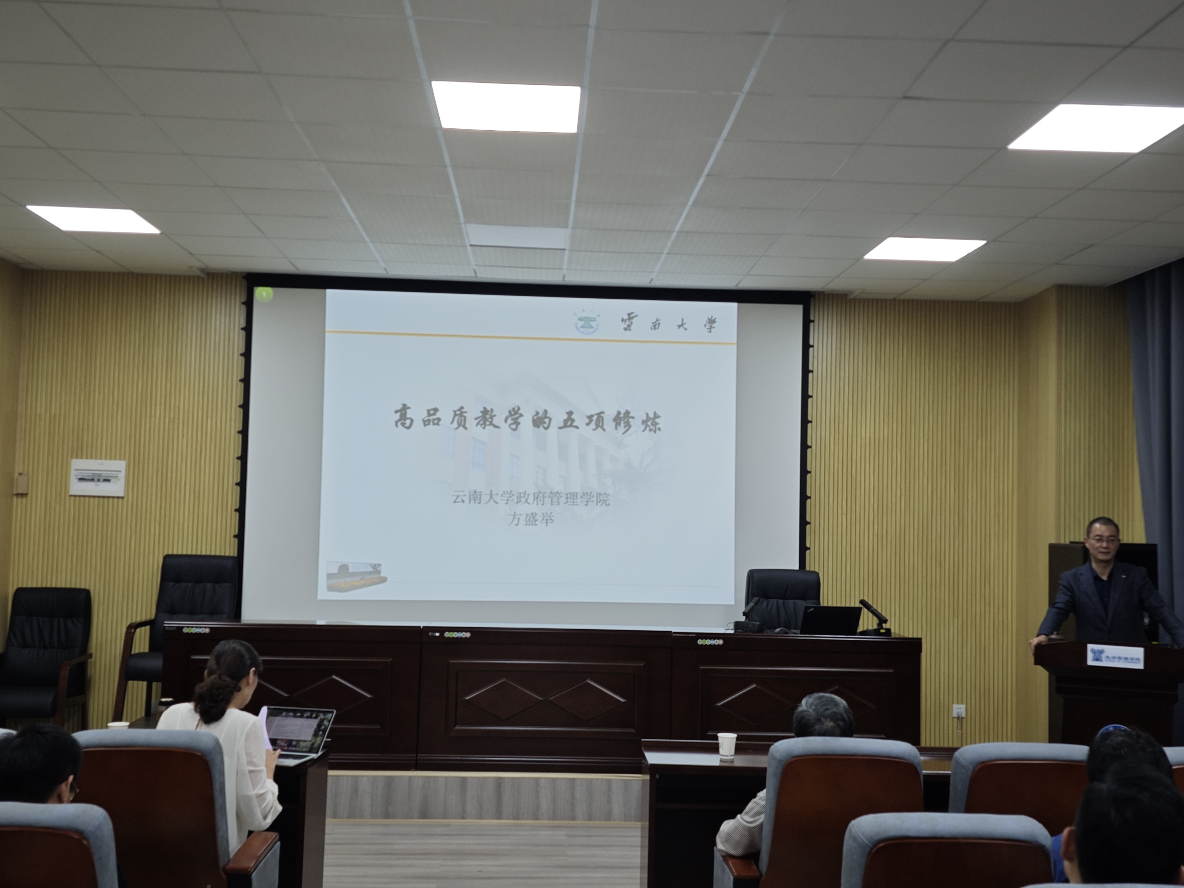 方盛举院长从修炼正确的教学理念、修炼丰厚的隐性知识、修炼高超的授课技巧、修炼卓越的授课境界、修炼深厚的学术底蕴五个方面为青年教师们讲述了如何成为高水平教师的路径与方法。方院长强调,能力很重要,但素质比能力更重要,而觉悟比素质更为重要,教师应确立“不只教授学生有形的知识和技能,还应教学生无形的观念、态度、情感、精神和觉悟”的教学理念,在教学过程中做到以情感人,以理服人。